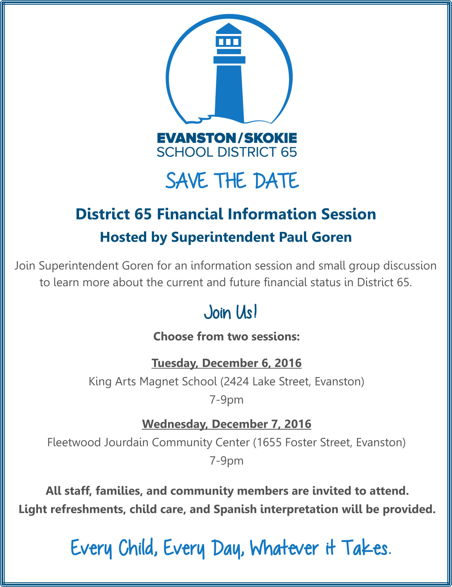 D65 Financial Info Sessions – Tuesday December 6th or Wednesday December 7th