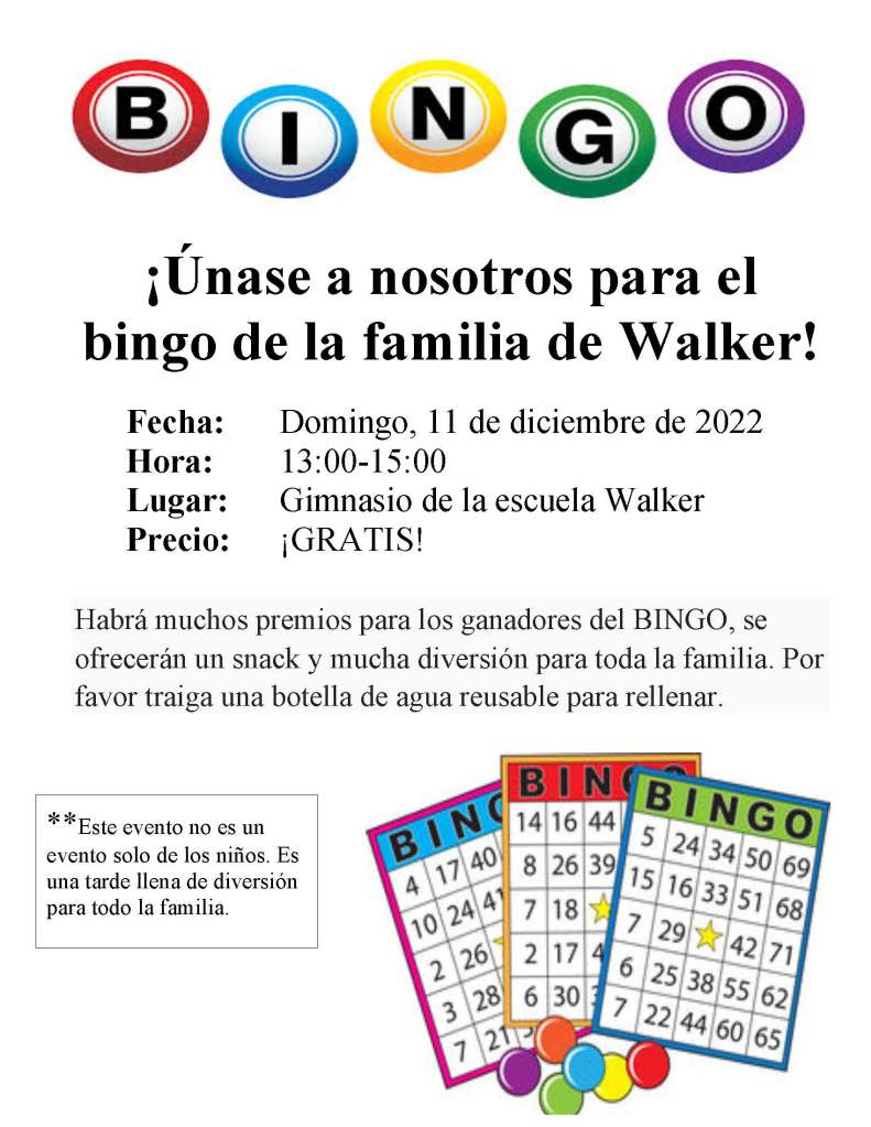 Family BINGO: Sunday, Dec. 11 @1-3pm