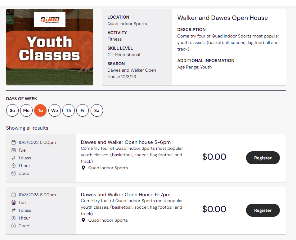 Come try four of Quad Indoor Sports most popular youth classes. Kids will rotate through