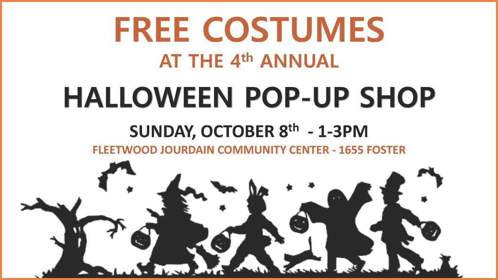 On Sunday, October 8th from 1-3pm at the Fleetwood-Jourdain Community Center there will be a Halloween Pop-Up Shop. The shop is open to any and all Evanston families. It has new and gently used Halloween costumes and accessories free of charge, on a first come first served basis. There are hundreds of costumes in all sizes, from toddlers to adults, so there’s something for everyone. Come check it out!