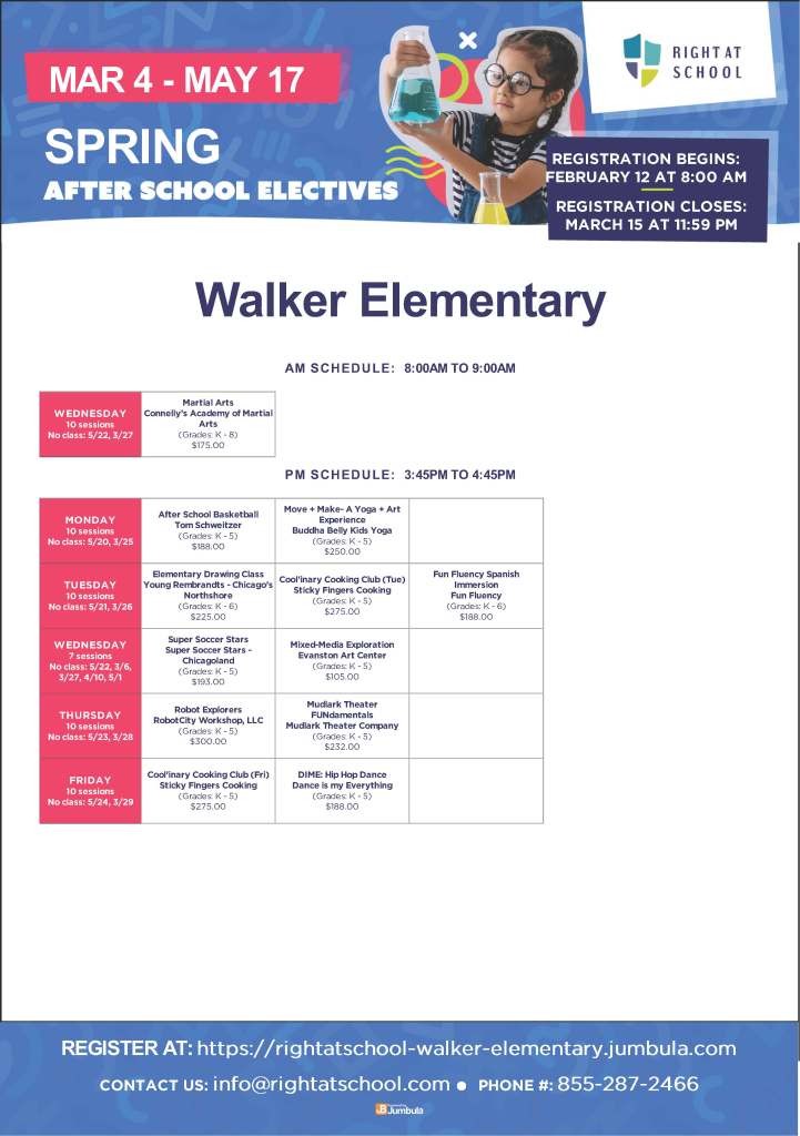 Sign up your student for a Spring elective! There’s sports, yoga, cooking, drawing. dance and more! Elective classes are additional enrichment classes led by companies that Right At School partners with that are typically one hour, once a week. Elective classes are a great opportunity for specialized enrichment in the convenience of our own school. Click here for more information and to register.