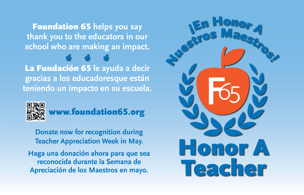 Go to www.foundation65.org/honor-a-teacher to make your gift and craft your personal note today.