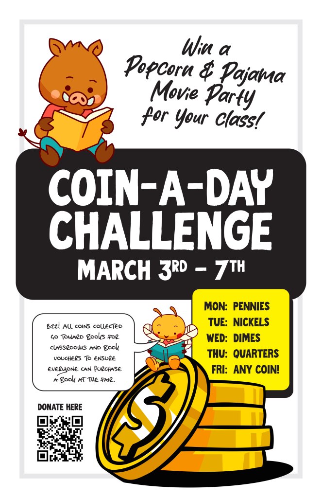 Book Fair (3/8-3/12) & Coin-A-Day Challenge (3/3-3/7)